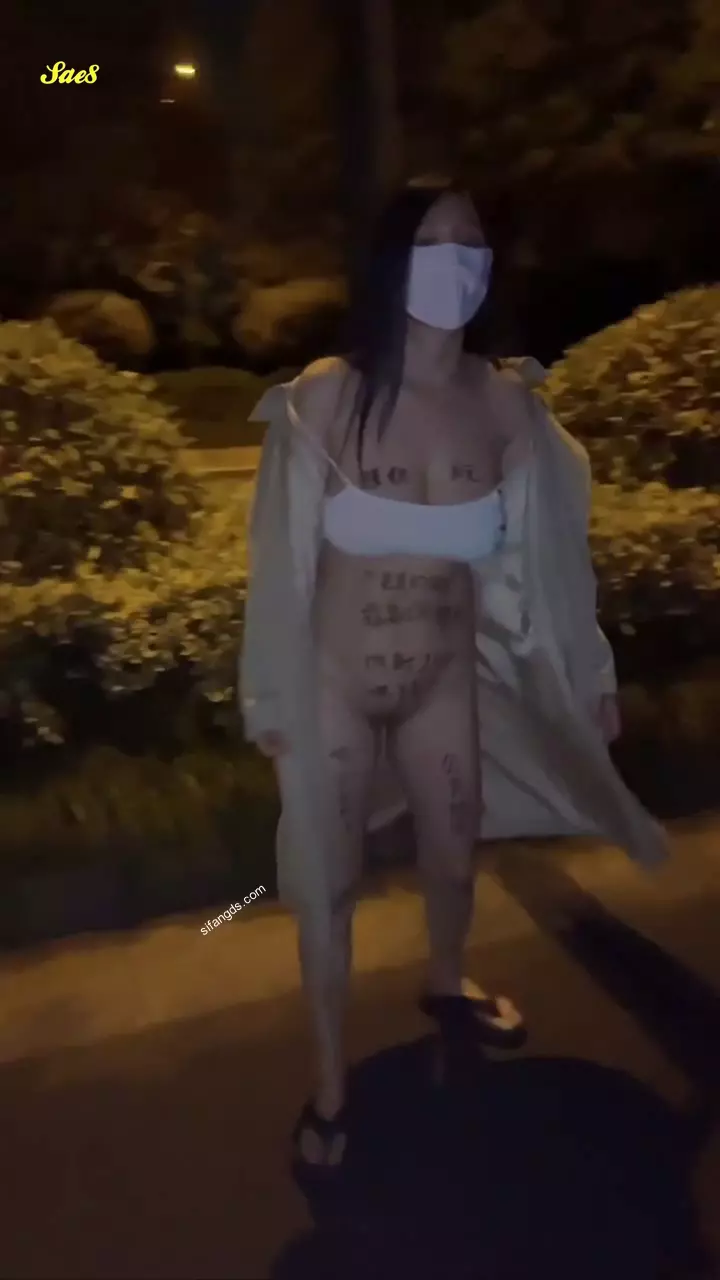 户外露出爱好者F杯爆乳网红人妻茵茵晚上裸体逛国道